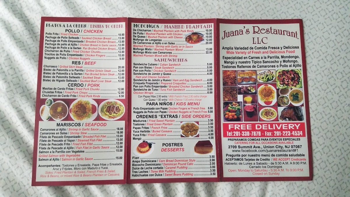 Welcome to Juana's Restaurant, a hidden gem located at 2709 Summit Ave in Union City, NJ. This charming establishment offers an authentic taste of Dominican cuisine that will transport your palate straight to the Caribbean. With a cozy ambiance and friendly staff, Juana's is more than just a meal; it's an experience that feels like home.